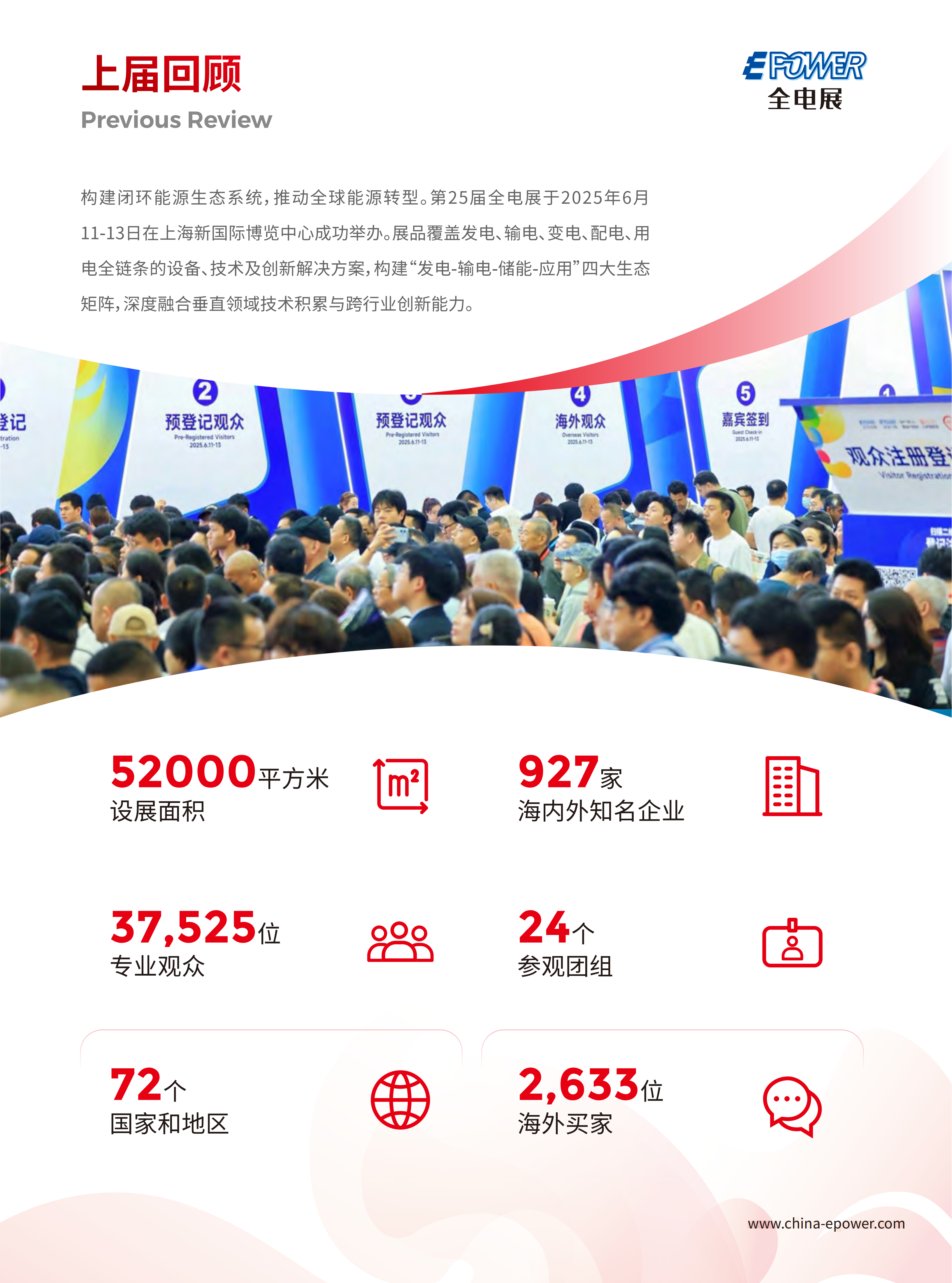 为推动电力装备的绿色化、低碳化、智能化,构建支撑能源清洁生产和绿色消费的装备供给体系,实现电力能源行业绿色转型、落实"双碳"战略,由中国电器工业协会主办、隆高展览(上海)有限公司承办的第26届EPOWER全电展将于2026年6月3-5日在上海新国际博览中心举办。
