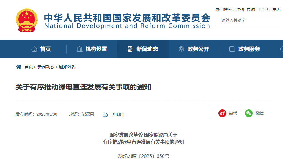 2022年以来,中国多地相继推出绿电直连政策。2025年5月,国家发展和改革委员会与国家能源局发布了《关于有序推动绿电直连发展有关事项的通知》(发改能源〔2025〕650号),明确了绿电直连的定义,即风电、太阳能发电、生物质发电等新能源不直接接入公共电网,通过直连线路向单一电力用户供给绿电,可实现供给电量清晰物理溯源的模式。