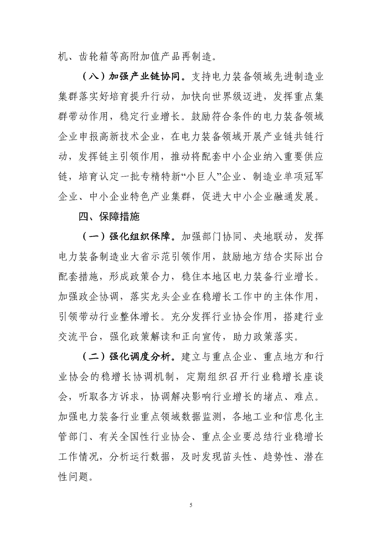 通过提升装备供给质量、扩大国内有效需求、积极开拓国际市场、加快装备推广应用、强化标准支撑引领、优化行业发展环境、推动数字化绿色化转型、强化产业链协同等一系列举措,夯实电力装备行业增长基础,为实现经济运行整体向好提供坚强支撑。